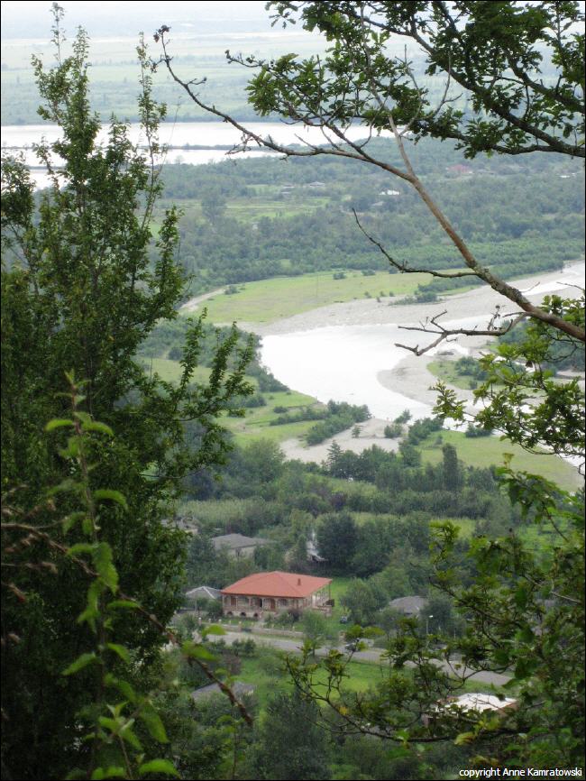 Nakalakevi liegt in einer Flußschleife des Techuri-Flusses direkt an den Ausläufern des nördlichen Kaukasus.